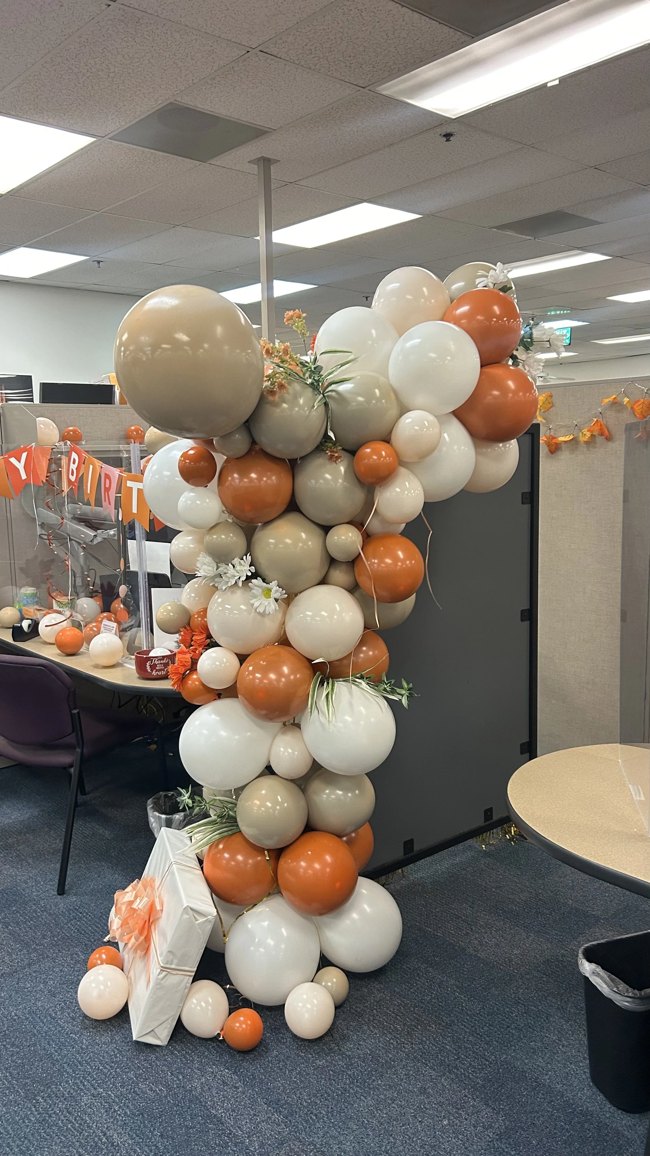 Freeform balloon arch - different sizes balloons connected together to create an organic, natural-looking design.